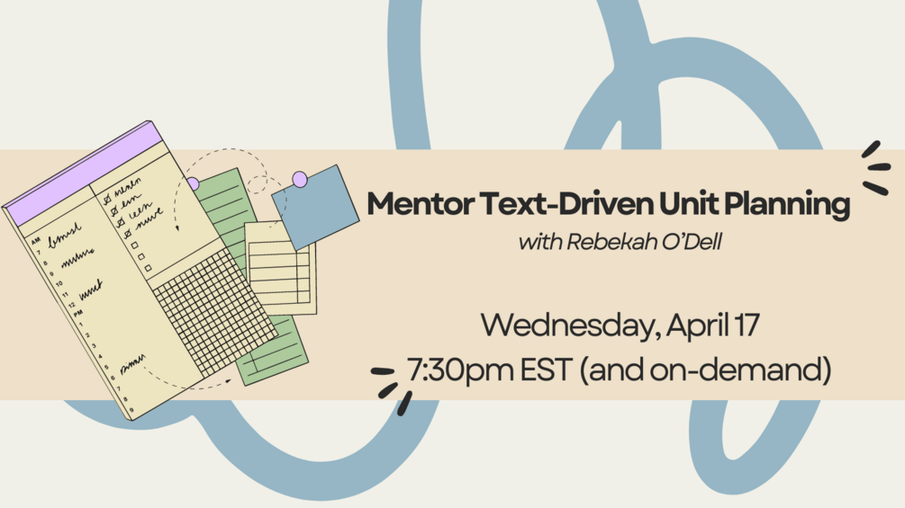In this mentor-text-planning 101 session, Rebekah will share a transferable step-by-step process for planning an entire unit of writing study with mentor texts at the center. This process can be applied to absolutely any writing unit a teacher needs to teach at any grade level. This session can be bundled with the other sessions in the Planning Series for an overall reduced price!